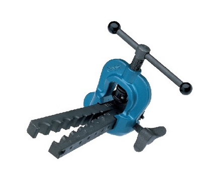 用于铜管、铝管、黄铜及软质钢管的扩口。 压铸锌机体,钳口为钢质。 开口角度90°与管子成45°。