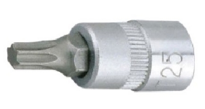 配合1/4"棘轮扳手用于装拆内六星螺钉 铬钒钢材质,头部发黑,表面镀铬处理