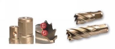 带有19mm的 Weldon柄部。 两个固定面,及一个用于RotaQuick的锥形扩孔, 采用高速钢材料,高性能的锯形切削齿圈。 切削深度分为25,35,50, 110mm, 孔径12 - 60mm。