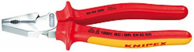 强力型由于采用新式改进型杠力矩设计,省力35%;较长剪切口适合剪切较粗电缆线;钳口适合夹持扁平和圆形材料,用于多种用途;剪切口适合剪切软线,硬线及钢琴丝;剪切刀口附加感应淬火,硬度为洛氏硬度64HRC;长度200,头部镀铬,双色双重材料绝缘手柄;剪切能力直径2. 面积25mm
