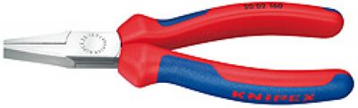 短扁嘴钳口;钳口表面带齿;采用特殊工具钢制成,经特殊淬火和退火处理;长度160,头部抛光,双重双色材料手柄