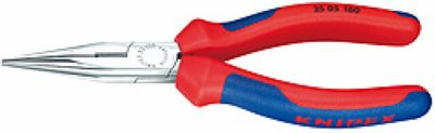 适于电子元件的夹持和剪切;尖形半圆嘴钳口;钳口表面带齿;剪切刀口适于剪切中硬线和硬线;刀口硬度约为洛氏硬度HRC61;长度160,头部镀铬,双色双重材料手柄