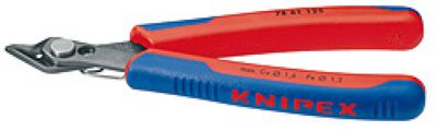 精磨的剪切刀口,无偏刃,适于齐平剪切工作;精密成形的尖端亦可齐根剪切直径0.2mm的材料;采用不锈钢铆钉接合低磨擦剪切使操作疲劳减到最少;采用复位弹簧实现有限制的复位;手柄配有双色双重材料手柄,红色和蓝色;剪切刀口附加感应淬火, 硬度约为洛氏硬度64HRC;长度125,头部磨光,双色双重材料手柄