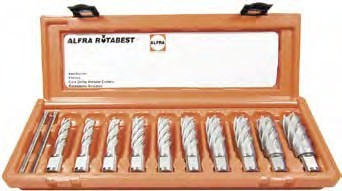 10-er Set Kernbohrer: mit je x ? 2 x 12.0 - 2 x 14.0 - 1 x 16.0 - 2 x 18.0 - 1 x 20.0 - 2 x 22.0 mm in stabiler Kassette incl. 2 Auswerferstifte Art.-